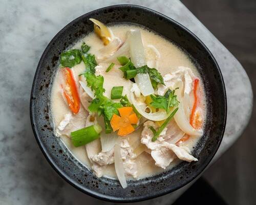 | Tom-Kha | Spicy coconut broth with chicken, lemongrass, gaiangal roots, kaffir lime leaves, mushrooms & tomatoes | £13.95 |