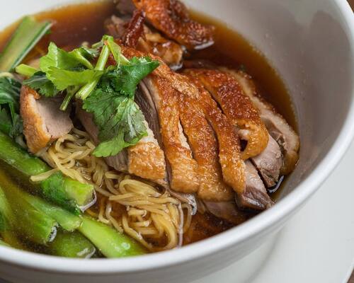 | Ba Mee Ped Yang | Shredded roasted duck served with egg noodles, choi sum and coriander in a tasty duck broth | £12.95 |